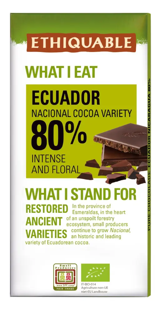 De Nacional-variëteit, die nu met uitsterven wordt bedreigd, is door inheemse geteelt en heeft gezorgd voor de reputatie van Ecuadoraanse cacao. De boon geeft een intense chocolade met een zeer typische subtiele bloemensmaak.