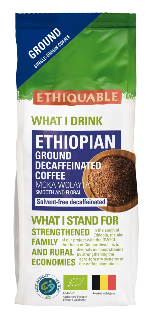 Notre Moka d’Ethiopie, café moulu décaféiné sans solvant est cultivé en agriculture biologique entre 1200 et 2200 mètres d’altitude. Il présente un corps léger et une grande douceur avec des notes douces et florales typiques du terroir Wolayta.