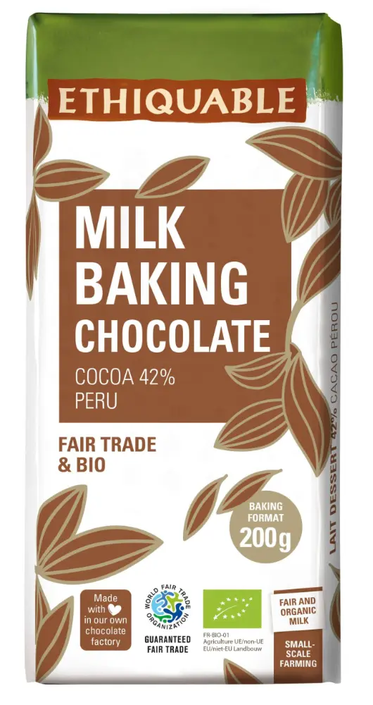 Pour pâtisser tout en douceur, ce chocolat lait dessert est onctueusement dosé à 42% de cacao du Pérou.