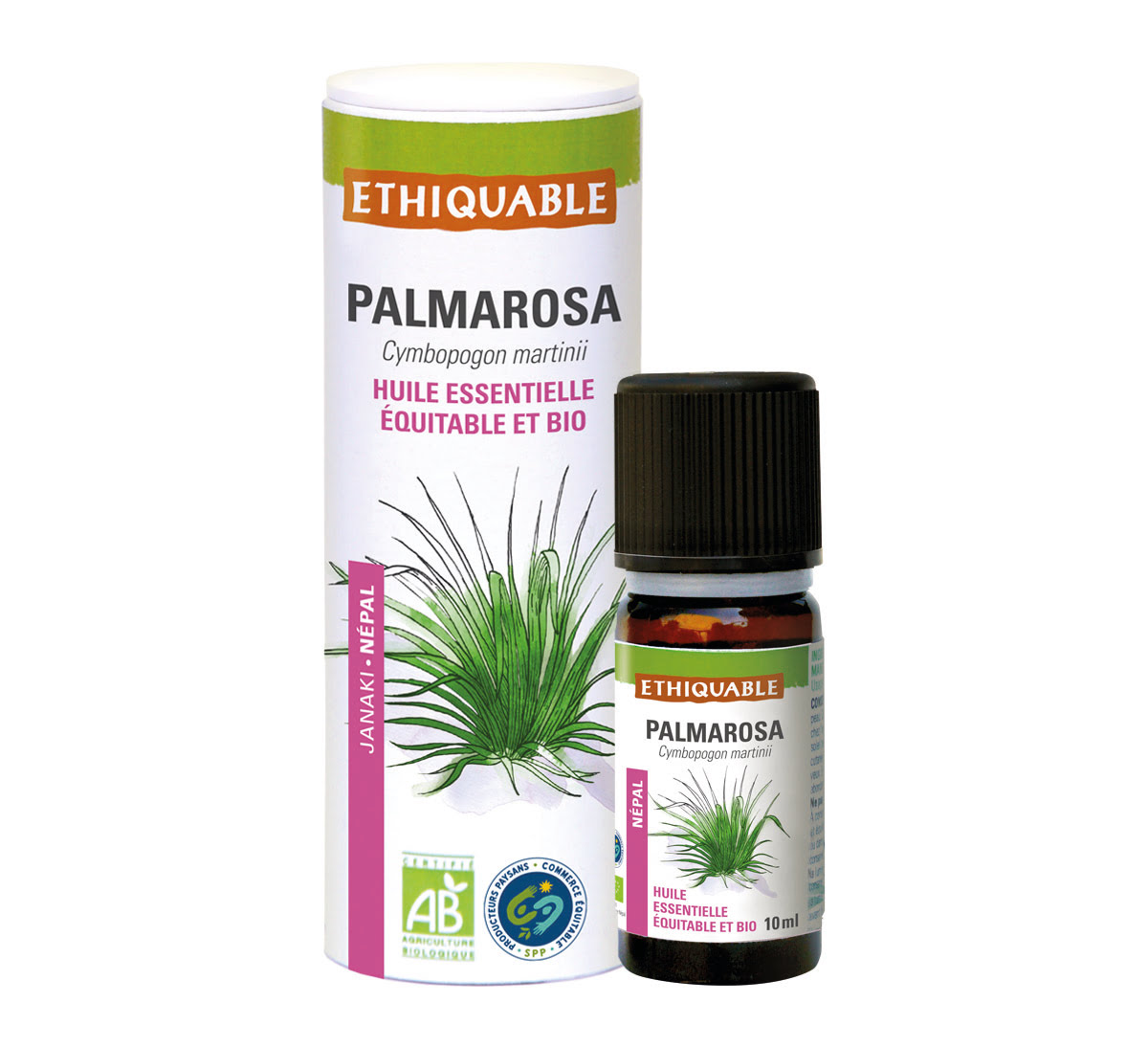 Cette huile essentielle de Palmarosa, 100% pure et naturelle, provient de l’agriculture biologique et du commerce équitable. Elle subit ensuite une distillation sur place par une méthode douce, utilisant la vapeur d’eau sous basse pression pendant une durée complète afin d’extraire toutes les molécules aromatiques volatiles.