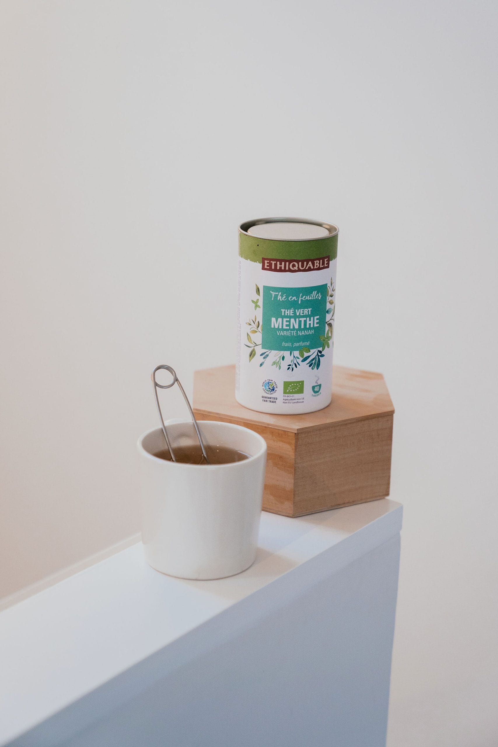 Notre Thé à la Menthe traditionnel en vrac est certifié BIO et Équitable. Il allie un thé vert du Vietnam cueilli à la main et les feuilles de Menthe douce Nanah. Ce mélange délivre une tasse vive, végétale et intensément parfumée, sans aucun arôme ajouté. Un classique de qualité pour les vrais amateurs.