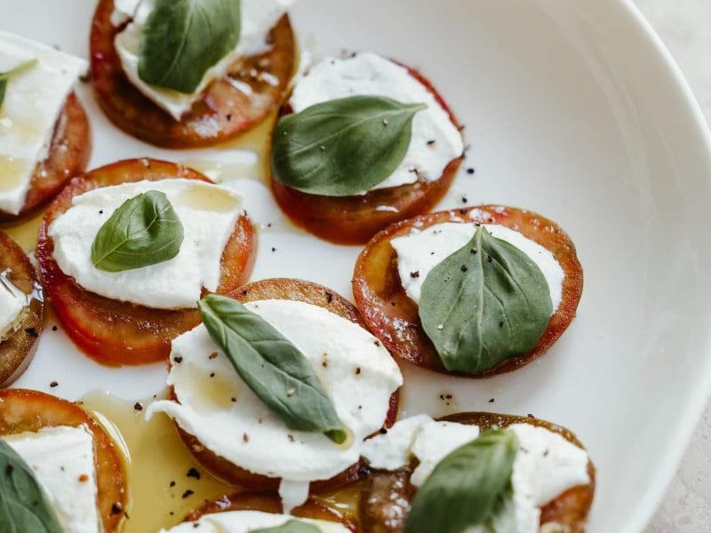 Fraîche, colorée et pleine de soleil, la salade caprese sublime la simplicité des bons produits : tomates juteuses, mozzarella fondante, basilic parfumé et un filet d’huile d’olive pour lier le tout. Un classique italien, aussi rapide que savoureux, à déguster sans modération.